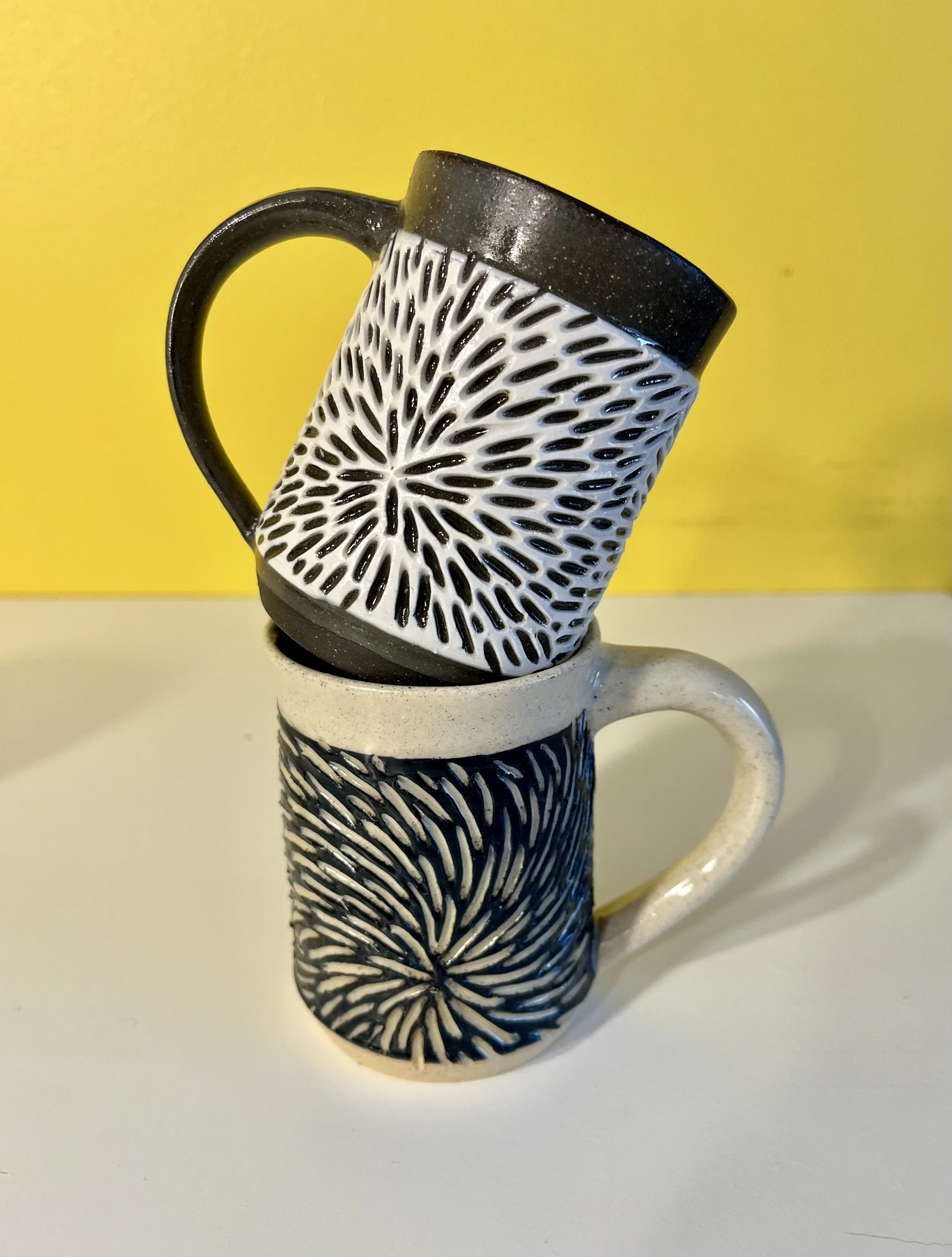 Mid-fire pottery presented as mugs, bowls and vases are available on the day of our show.