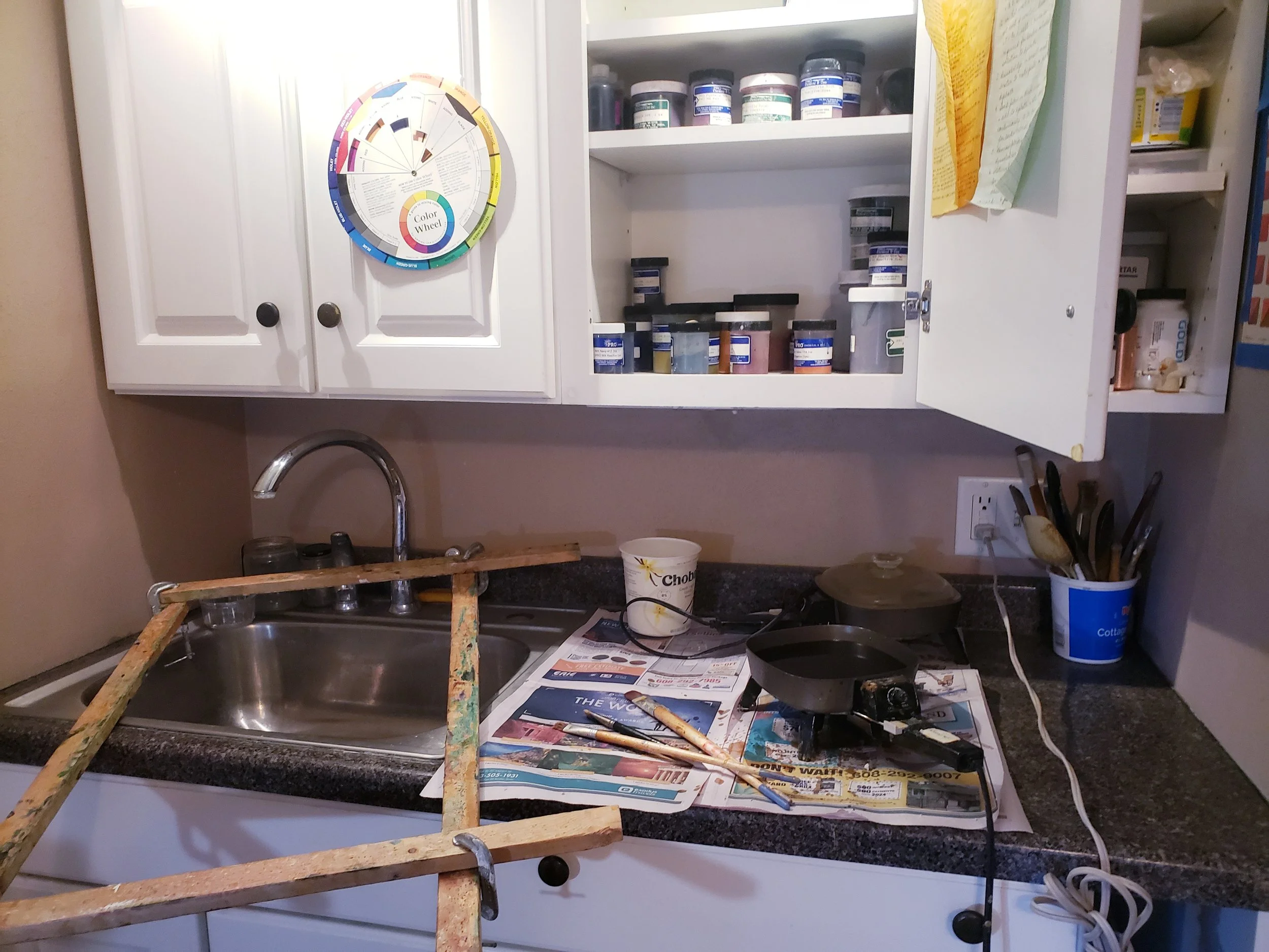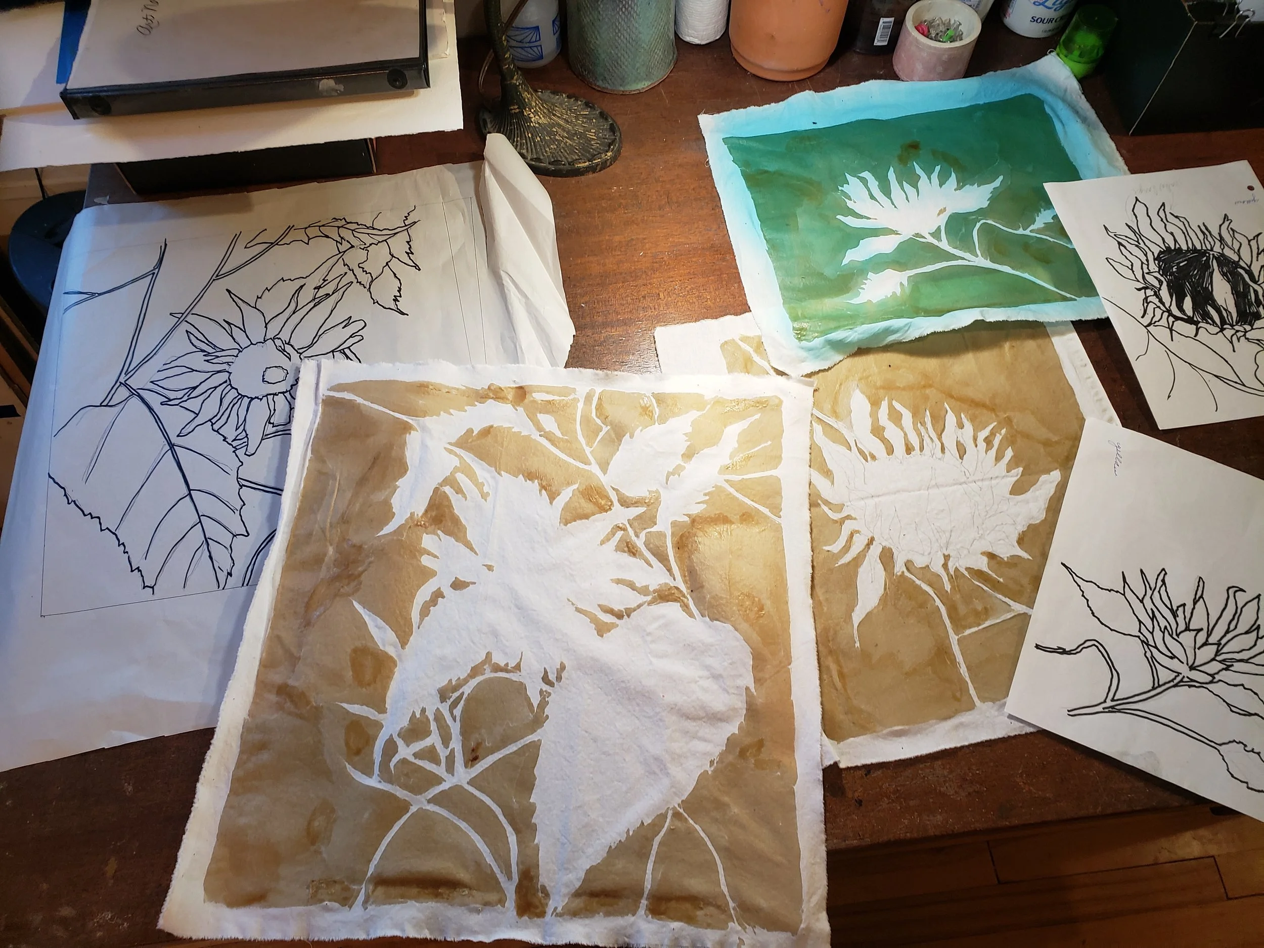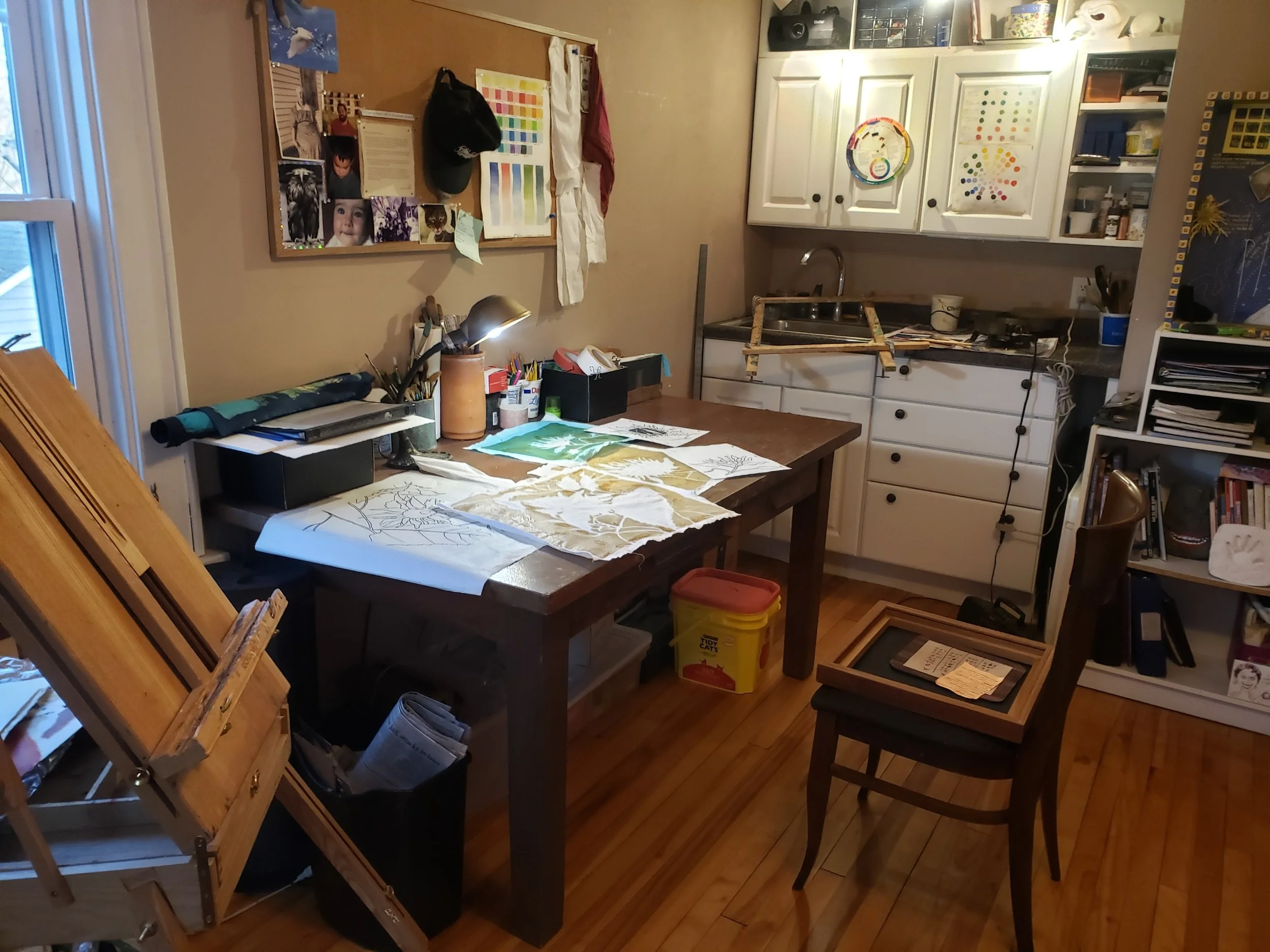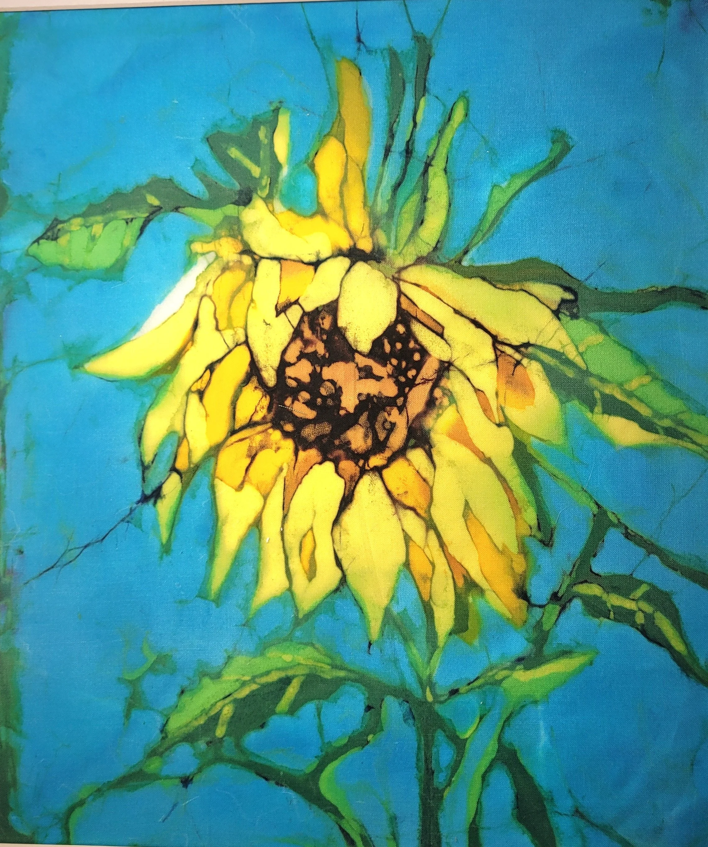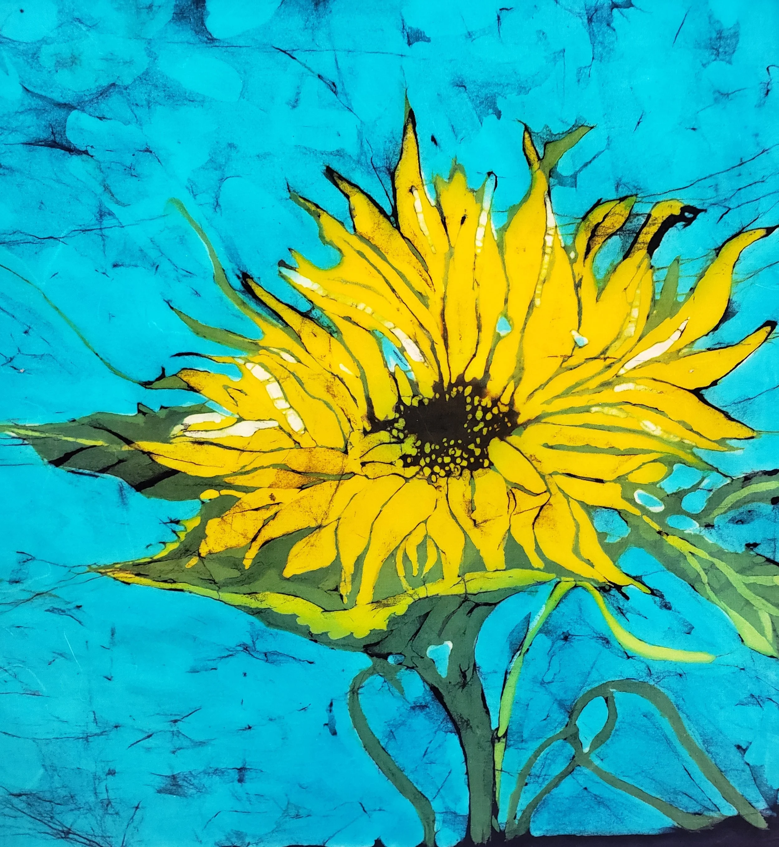 From photo inspiration, to stretching fabric on a wood frame before painting the hot wax resist, to removing the first resist. Layers upon layers, color upon color, until the image is whole.